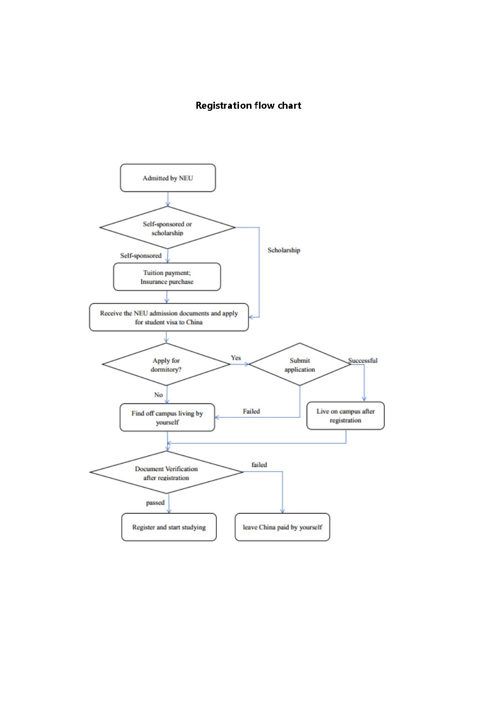 NEU will conduct a preliminary review of students' original passports, visas, academic certificates, transcripts, educational and work experience, etc. at the time of registration. Only after the review is passed can the enrollment procedures be processed. After enrollment, a review will be conducted in accordance with the national enrollment regulations. If the initial review or review of the admission qualification is not passed, the admission qualification will be cancelled. Those whose admission have been cancelled must purchase tickets at their own expense to leave China within the validity period of their visas.