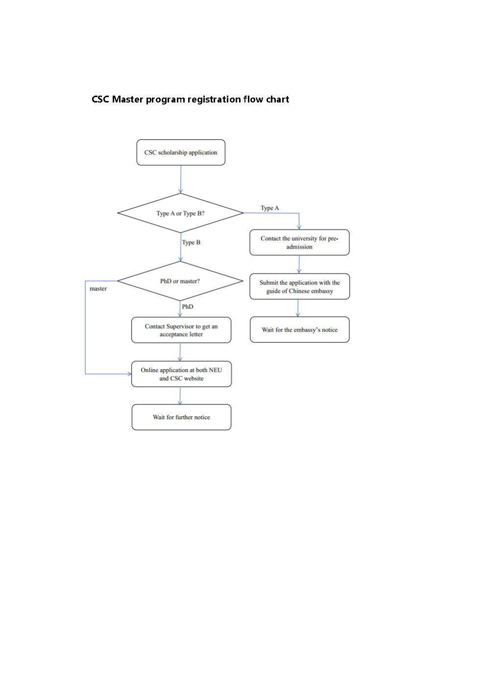 A9: If you apply for self-sponsored, you must apply at NEU application system, if you apply for scholarship, you must apply both at NEU and CSC application system online.